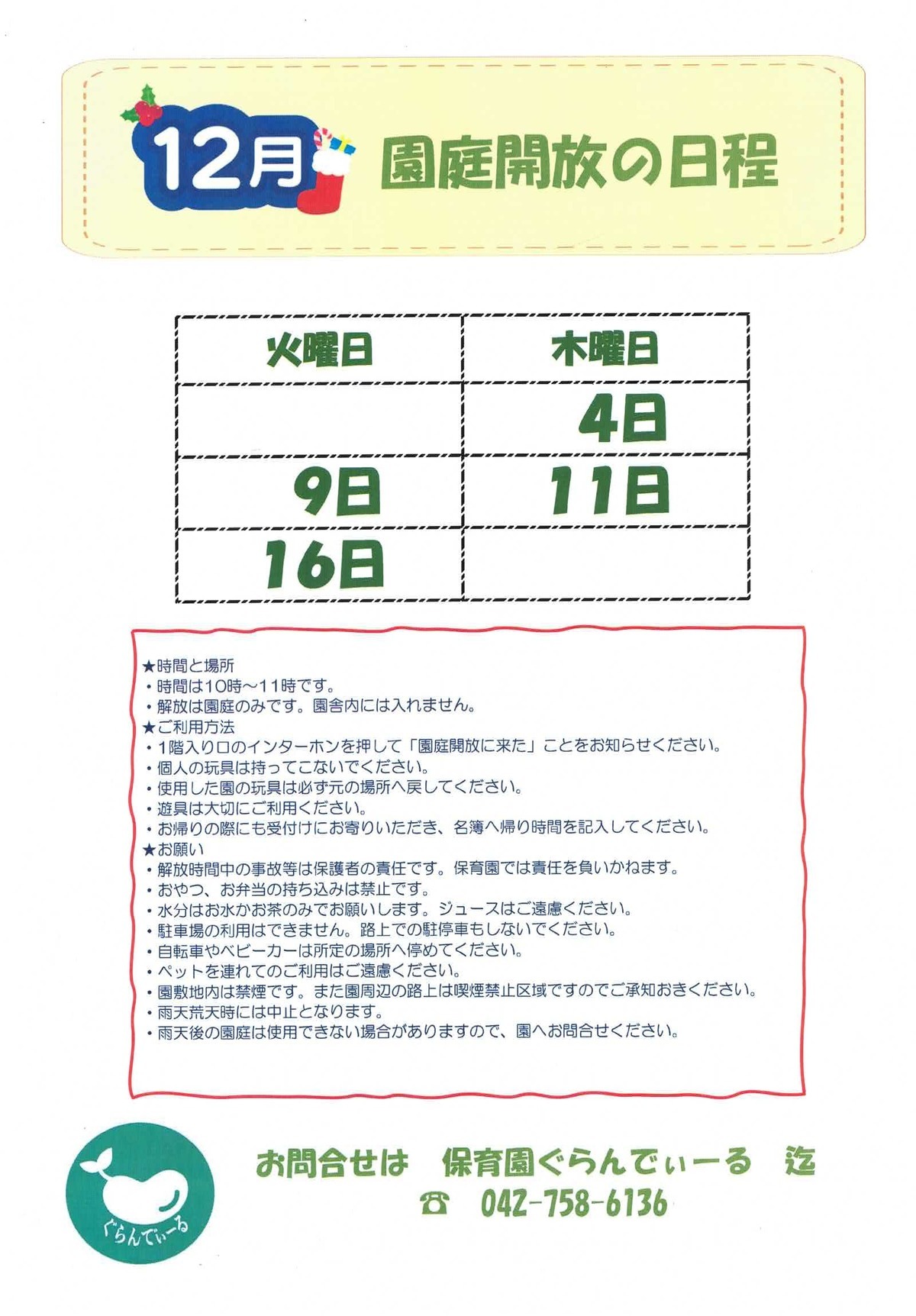 ・雨天後の園庭は使用できない場合がありますので、園へお問合せください。